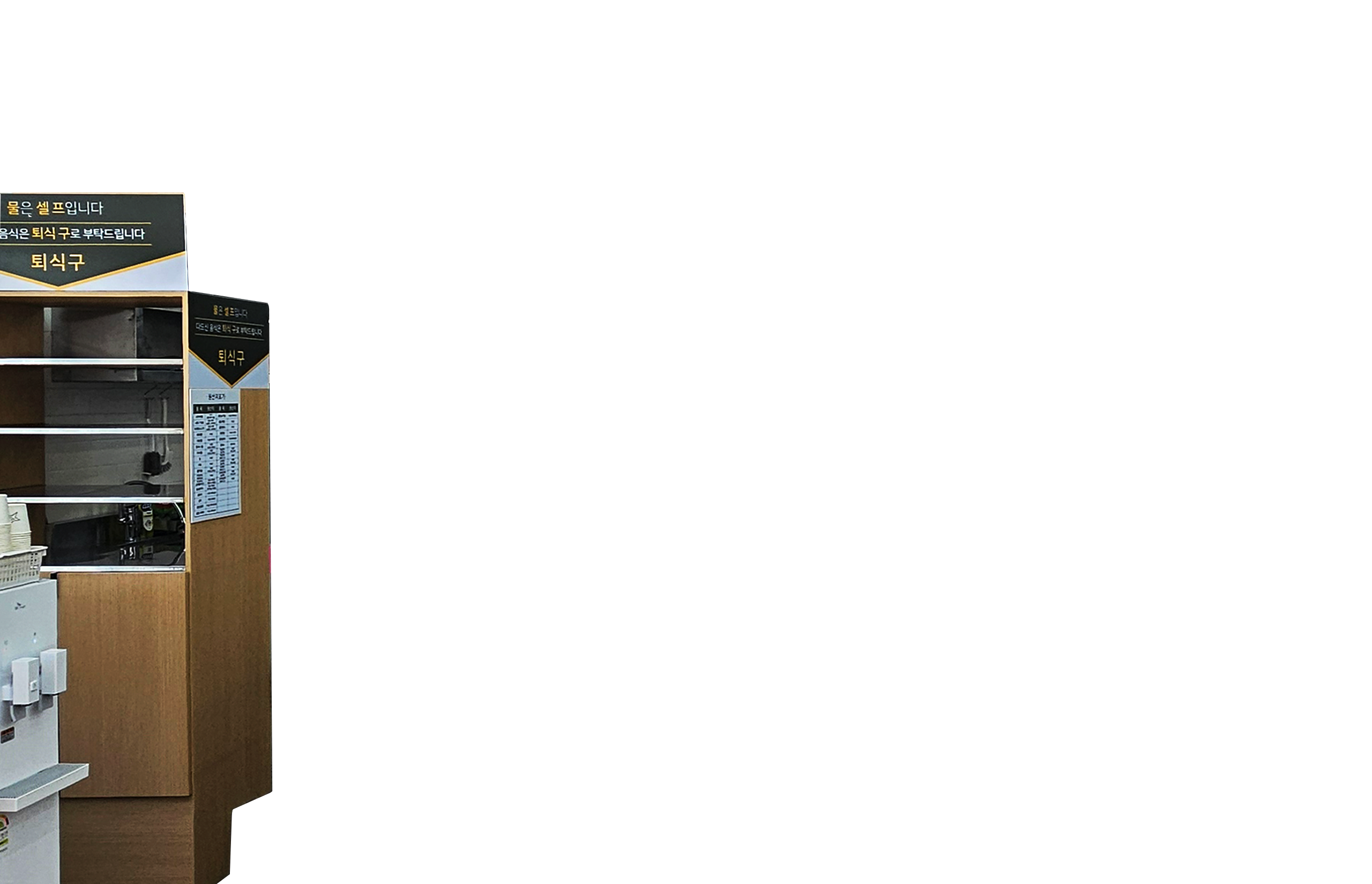 셀프로 서빙하는 배식 및 퇴식구셀프 시스템 도입이 익숙한 업종으로