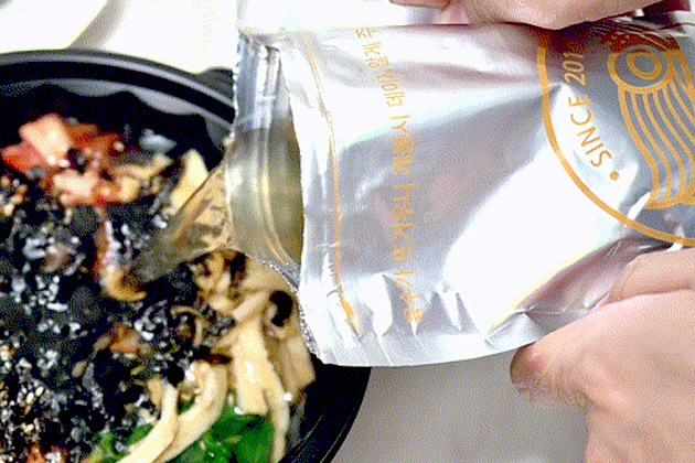치자로 물들인 노란 면발은